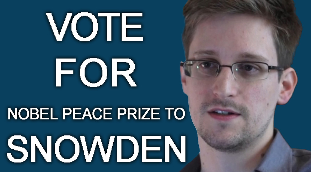 Propomos Edward Snowden para o Prémio Nobel da Paz, em virtude da sua luta não-violenta a favor dos direitos fundamentais. Entre estes, é essencial o direito de expressar-se livremente em todo o mundo, sem a vigilância do Grande Irmão. Afirmamos a estreita ligação entre os direitos fundamentais e a paz, aqueles e esta pré-requisitos para a "fraternidade entre as nações" a que Alfred Nobel se refere no seu testamento. Snowden, denunciando a submissão dos novos media à política imperial e fautora do caos e da guerra, deu um grande contributo para a paz no mundo e a fraternidade entre os povos. Revelou à opinião pública internacional a existência de um sistema generalizado de escutas das comunicações privadas na Internet – e não só – conduzido secretamente pelo governo dos EUA através do programa de vigilância PRISM. Estas revelações, nunca desmentidas, foram consideradas credíveis pelos mais importantes jornais internacionais. Induziram governos, como o da Alemanha, a pedir oficialmente, através do Ministério da Justiça, esclarecimentos às autoridades dos EUA. Estas últimas decidiram entretanto acusar o jovem ex-colaborador da Agência Nacional de Segurança (National Security Agency, NSA) de espionagem, furto e utilização ilegal de bens governamentais, compelindo-o a uma precária condição de fugitivo enquanto se desenrola uma "campanha de pressão em toda a linha" – como a define o New York Times – visando convencer os governos progressistas da América Latina a não lhe concederem asilo político.